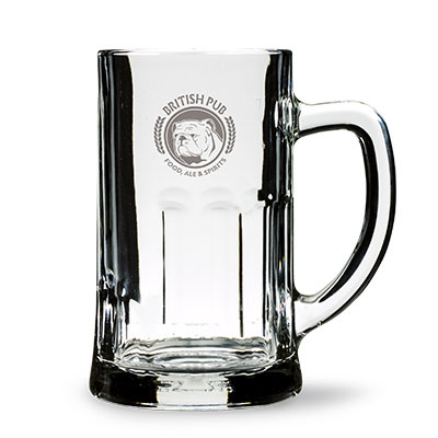 A massive tankard made of thick glass.