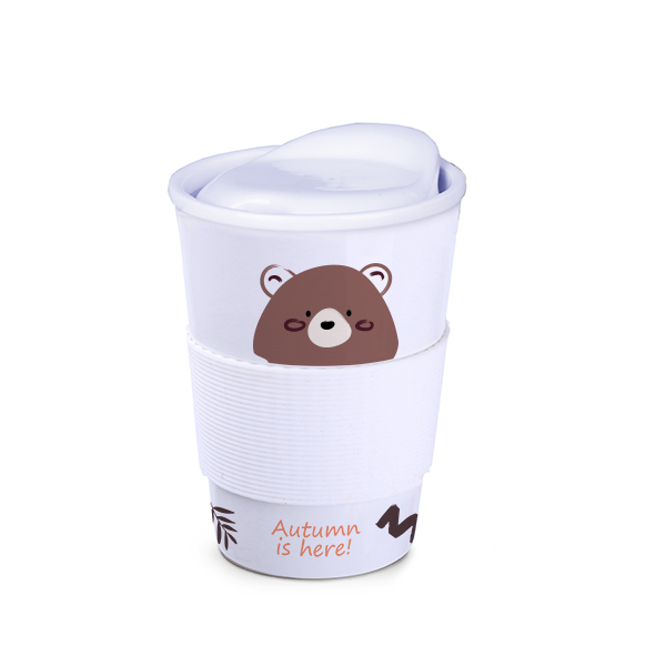 A fashionable mug for active lifestyle enthusiasts. The porcelain cover provides protection against accidental spillage and an elegant band 45 mm allows for a sure grip. Bands are available in 8 colors: white, orange, red, green, navy blue, brown, black and gray.