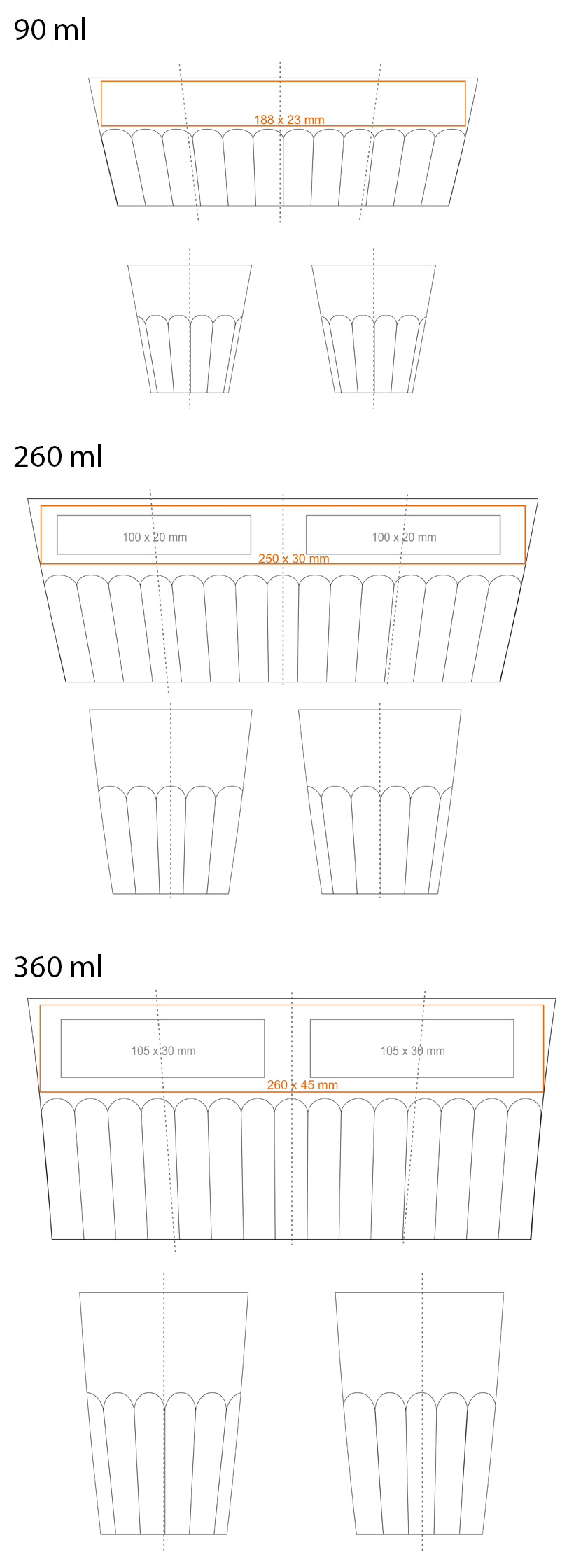 Capacity: 90 / 260 / 360 ml Colours: