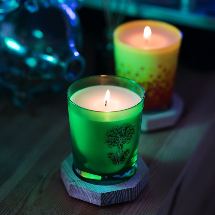 A noble LUMENA candle with harmonious walls, the decoration of which in an extremely subtle, and at the same time effective way will emphasize the position of the promoted brand.