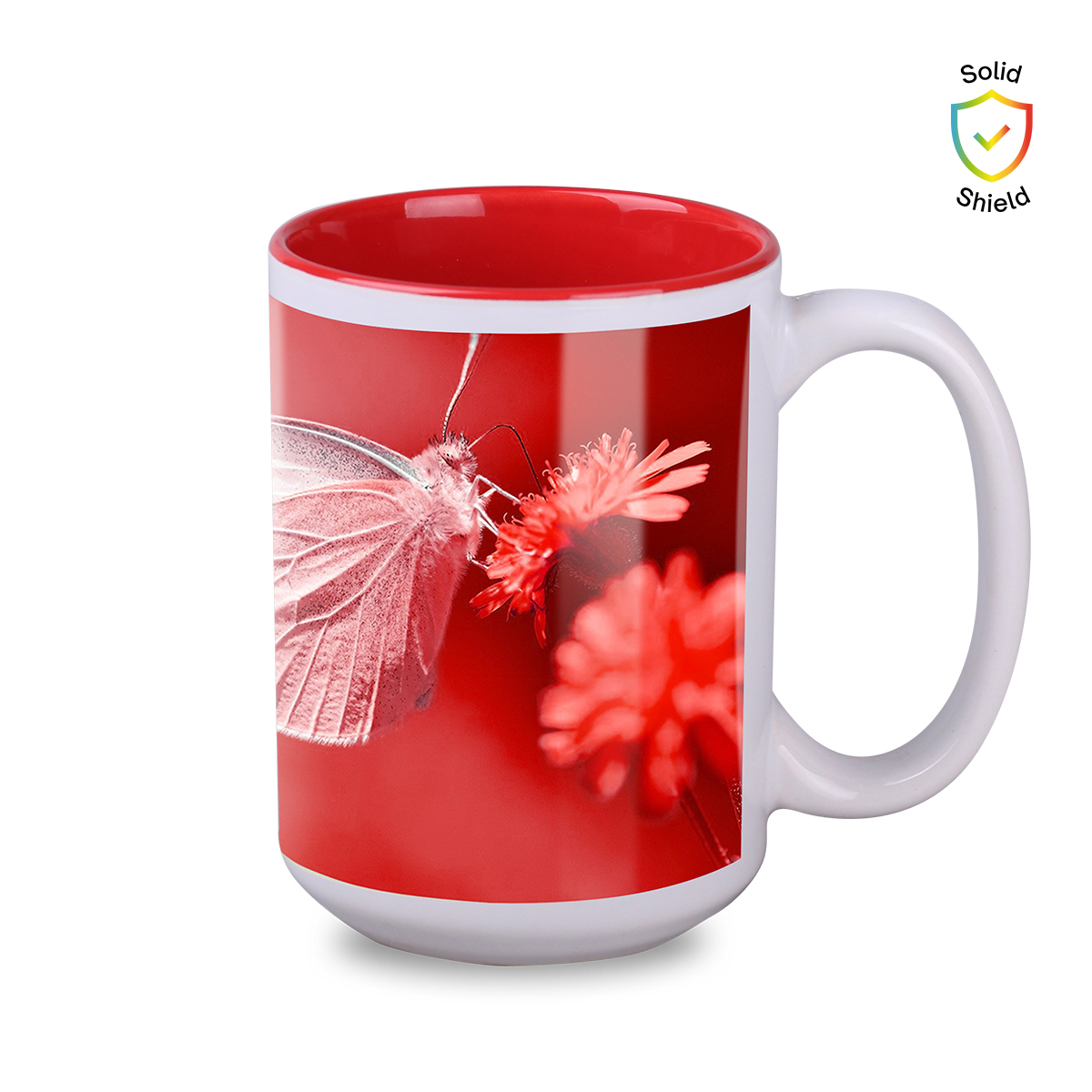 A sublimation mug with a classic shape and large capacity. Available in several variants with a colorful interior. It features an ergonomic handle and offers extensive branding opportunities.