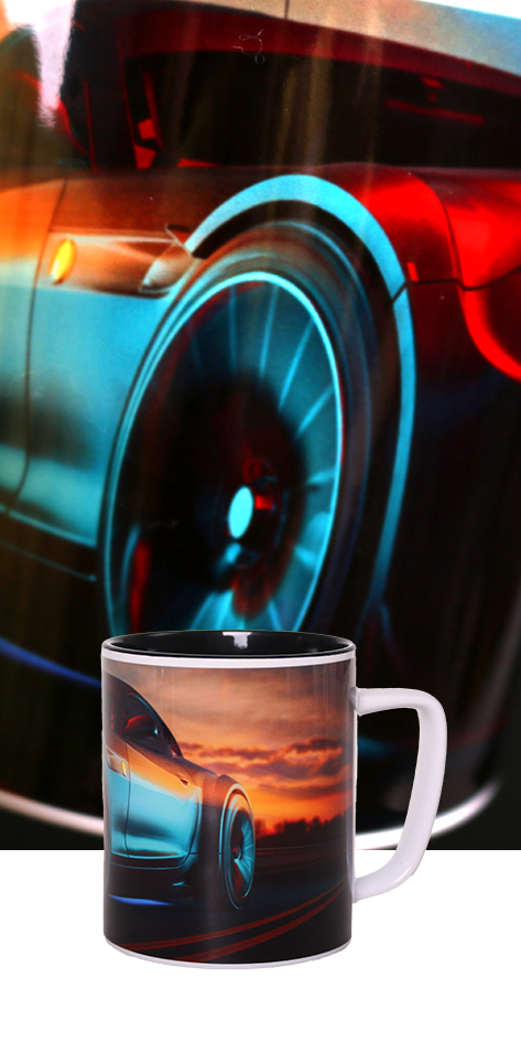 High quality sublimation print applied to the ceramic surface with a special paper. The decoration is only available on selected types of mugs with prior coating with colorless varnish - polyester.