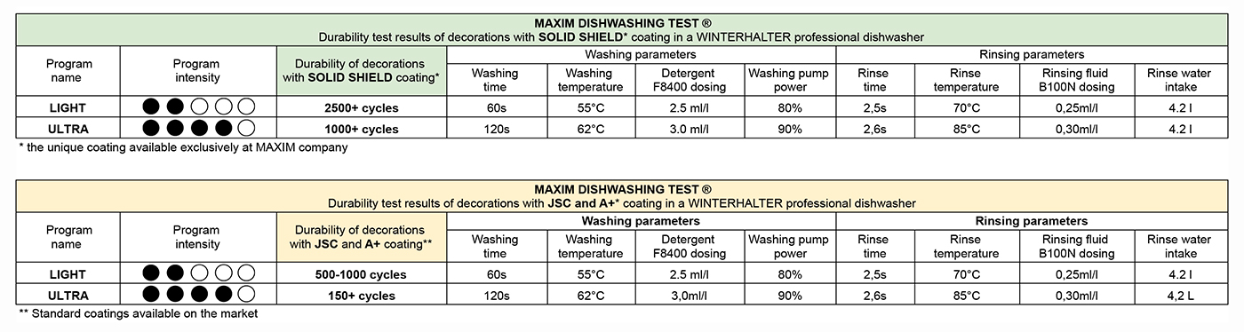* MAXIM DISHWASHING TEST ® in the WINTERHALTER commercial dishwasher