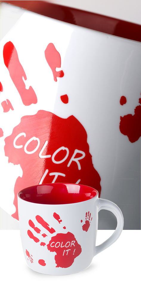 Multicolor is a new technology of coating the inner surface of the promotional ceramics. Thanks to the unique specificity of used paints, it is possible to combine the Multicolor with other decorating technologies. For example Multicolor can be combined with: Sensitive Touch, Transfer Print, Xpression – Organic Transfer Print and Direct Print.